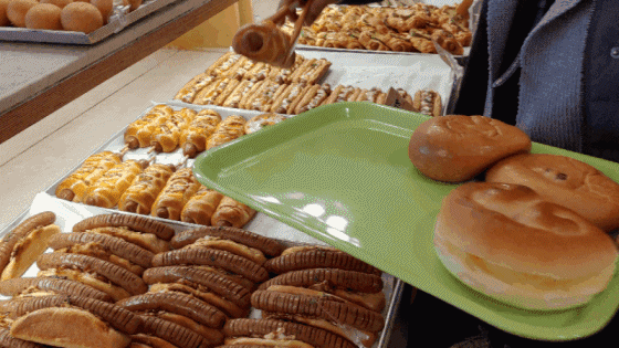 쟁반에 가득 담긴 빵들이 늘어서 있으니 우선 눈이 맛있어